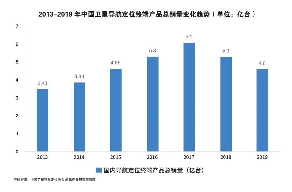 终端设备:2019年,北斗三号全球系统核心星座部署完成。据白皮书数据显示,截至2019年底,国产北斗兼容型芯片及模块销量已突破1亿片,国内卫星导航定位终端产品总销量突破4.6亿台,包括具有卫星导航定位功能的智能手机销售量3.72亿台,其中4G手机3.59亿部,5G手机1376.9万部。