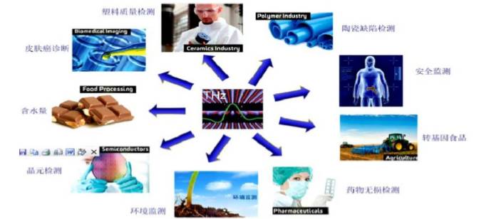 当然,除可用于探测爆炸物外,利用太赫兹精确的“指纹谱”还可对各类物质进行分析识别。例如,利用太赫兹波可鉴别不同种类的毒品,让此类“社会毒瘤”无处遁形。通过测定“炭疽热”粉末等对太赫兹波的吸收情况,还可成为防止生物恐怖袭击的一把无形盾牌。事实上,正是通过与一些新兴前沿学科领域交叉融合,太赫兹才与生物医学、微纳米技术、材料科学、光电技术等学科发生了巧妙的“化学反应”,不仅为太赫兹技术研究提供了一大批新兴技术手段,也为太赫兹世界描绘了应用更加宽广的美好未来。