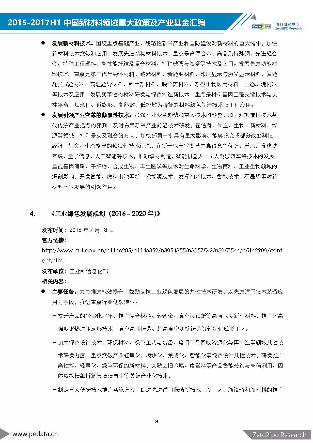 清科研究中心对2015年以来新材料领域的国家政策和2016年以来相关产业基金进行了梳理、分析,核心观点如下: