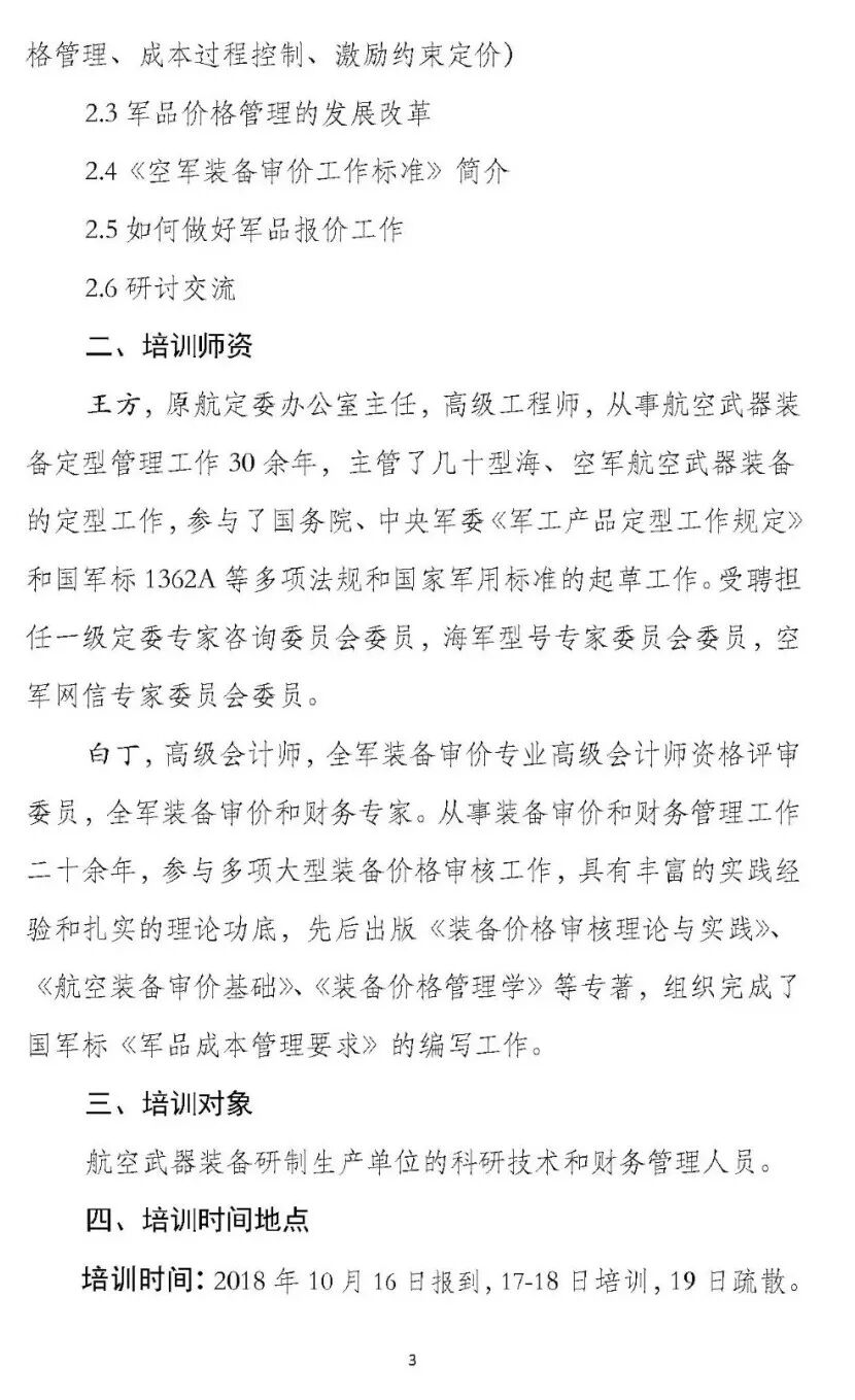 军工产品审价/定价专题培训的通知