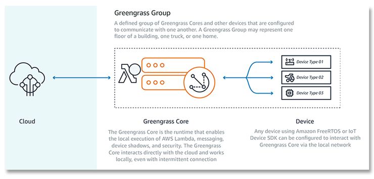 当然,这些是“智能”边缘设备:Greengrass需要至少1GHz的计算(Arm或x86),128MB的RAM以及用于操作系统、消息吞吐量和AWS Lambda执行的额外资源。根据亚马逊的说法,“Greengrass Core可以运行在从Raspberry Pi到服务器级设备的各种设备上”。