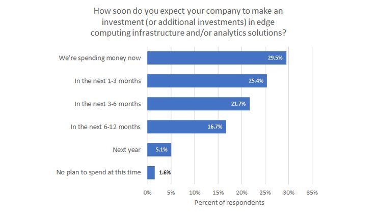Futurum Research在2017年底对500多家北美公司(从500到50,000名员工)进行了调查,以发现他们在边缘计算方面的方案采用和部署、投资意图等。Futurum表示,所有受访者都对边缘计算投资决策产生了影响,其中41.8%为“运营人员”,25.6%为“董事、经理、团队领导”级别;但只有8.6%的人被归类为“执行、高级管理人员、所有者、合作伙伴”。
