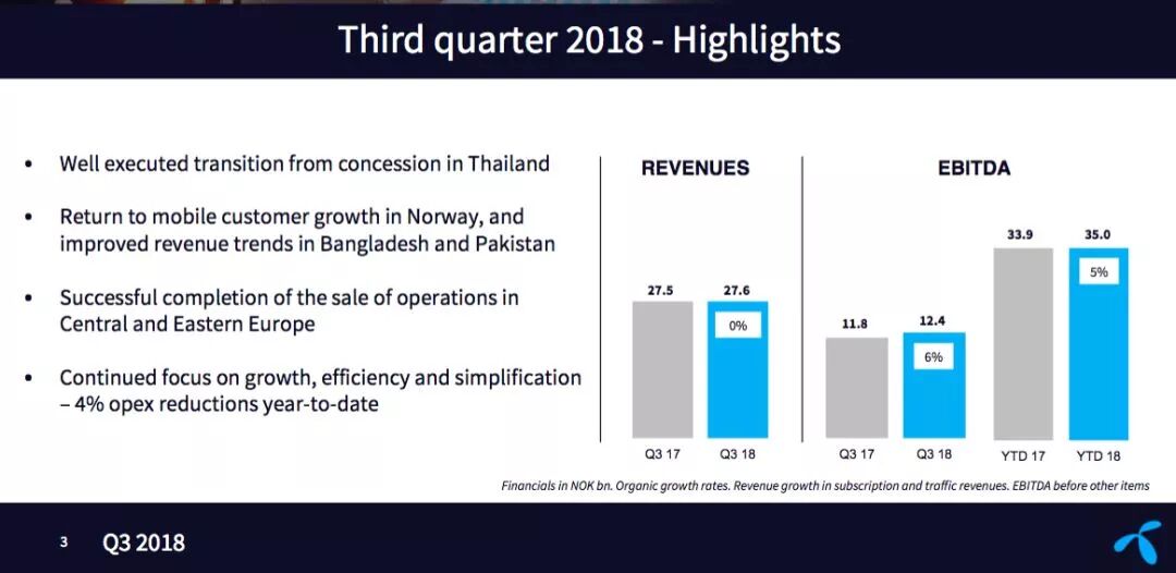 2018年10月,全球最大的移动运营商之一Telenor Group发布了一份“奇葩”的财报。该财报显示,Telenor 2018年前三季度尽管营收同比持平,但通过节省网络成本,却实现了利润却同比增长了5%。