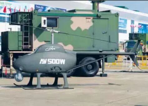 中国航空工业集团公司的AV500W无人机:中国航空工业集团公司的子公司中国直升机研究与发展研究院(CHRDI)正在开发AV500W无人机,它是民用型AV500垂直起降无人机的改进型,具有更强大的架构和更高的性能。据称AV500W无人机的有效载荷容积吨位为160千克。这通常包括安装在机头下方的稳定的光电红外传感器转塔以及内部携带的有效载荷,例如合成孔径雷达(SAR)或通信中继系统。它的短翼上也可以挂载武器。