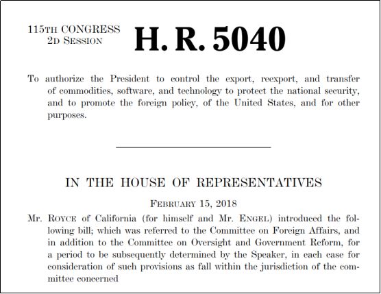 2018年11 月 19 日,根据 2018 年国会通过的《出口管制改革法案(Export Control Reform Act)》要求,美国商务部工业与安全局(BIS)拟制定将出口管制扩展到所谓“新兴和基础技术”(EFT)的规则,意图在新兴和基础技术的出口、再出口或转让(国家)方面建立控制措施,包括临时控制措施。