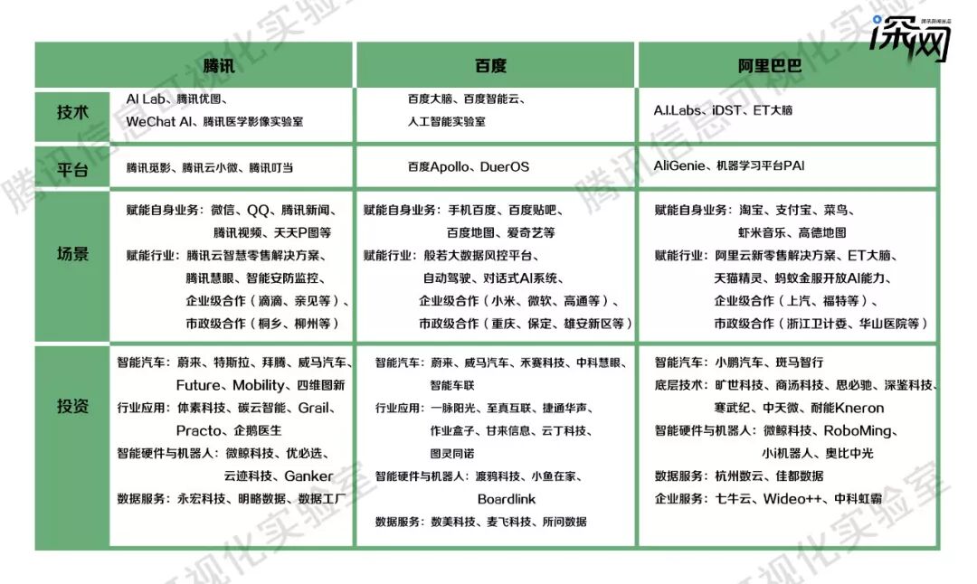 BAT人工智能布局(腾讯深网制图)