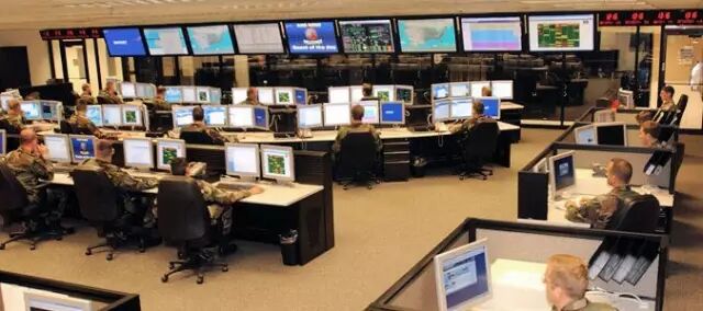 美第612空中和太空联合作战指挥中心,大屏上显的是先进的指挥控制系统,指挥控制中心的布局更像公司的工作间,指挥员的席位已经隐藏其中,并不显得突出。