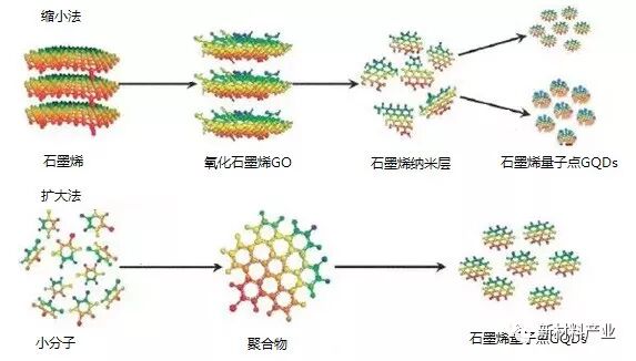 石墨烯量子点的制备主要分为扩大法和缩小法(也称“自下而上”和“自上而下”法),如图1 所示。