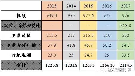 表1 《卫星产业报告》2016~2018年