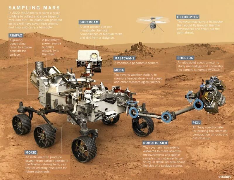 火星是在太阳系中与地球相邻的一个行星。它具有与地球相似的物理体积和地形地貌,完整地记录了太阳系50亿年中行星的诞生与演变历程。因此,火星探测对拓展人类的生存空间、探索生命起源等,都具有十分重要的意义。人类已经对火星开展了几十次无人探测任务,研究了火星的大气和地表。其中包括好奇号、机遇号、火星轨道探测器(MOM)、火星勘测轨道飞行器(MRO)、火星大气与挥发物演化轨道器(MAVEN)以及洞察号着陆器(InSight)等在火星表面着陆的探测器。美国宇航局(NASA)计划在2020年7月,在卡纳维拉尔角采用Atlas V火箭发射“火星2020漫游车”(Mars 2020 Rover),它将于2021年2月份抵达火星。这次任务将探索航天员登陆火星时可能遭遇的火星环境,对着陆地点进行地质评价、探测环境的可居住性,为选定载人火星的着陆场点作出贡献。与此同时,它还要直接探测火星的生命迹象,采集岩石样本和进行开发火星资源的初步试验。在这次任务中,另一个亮点是要进行火星无人直升机的首次飞行试验。