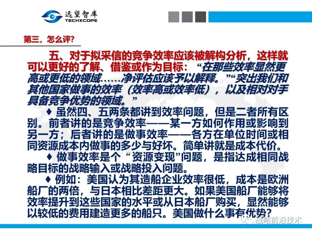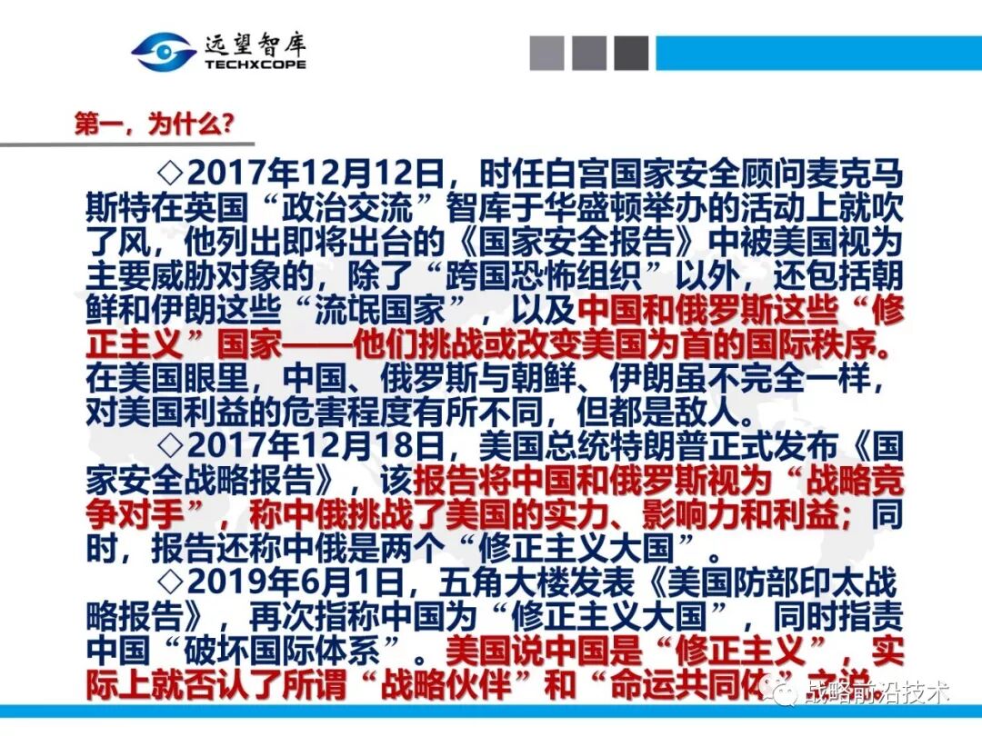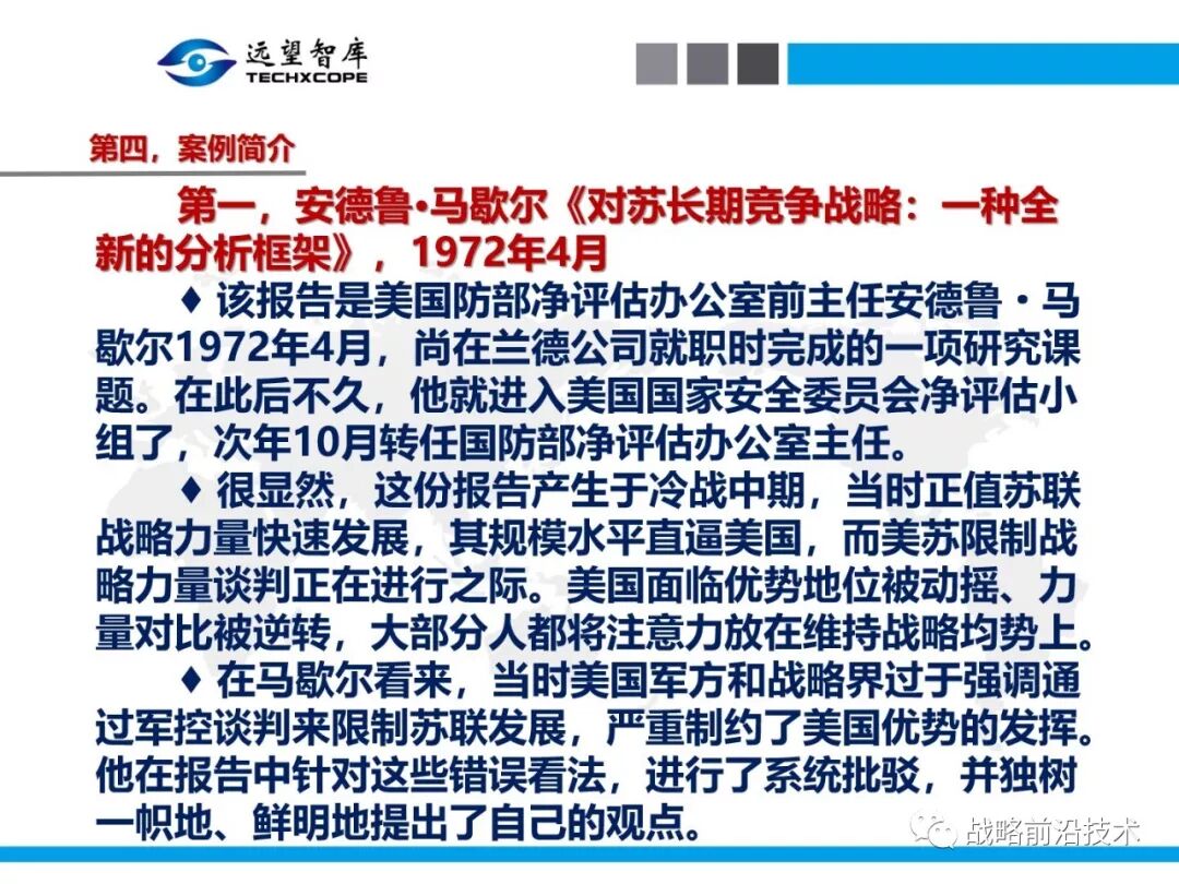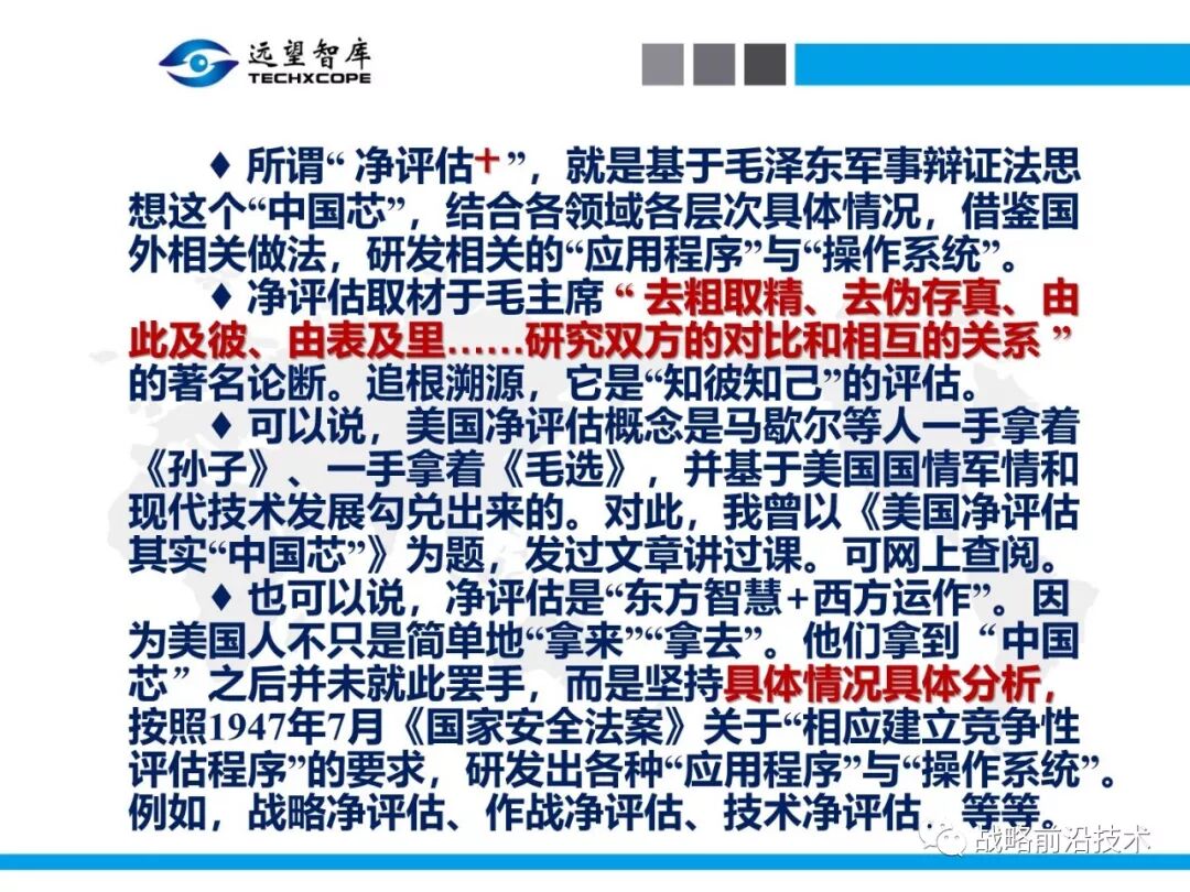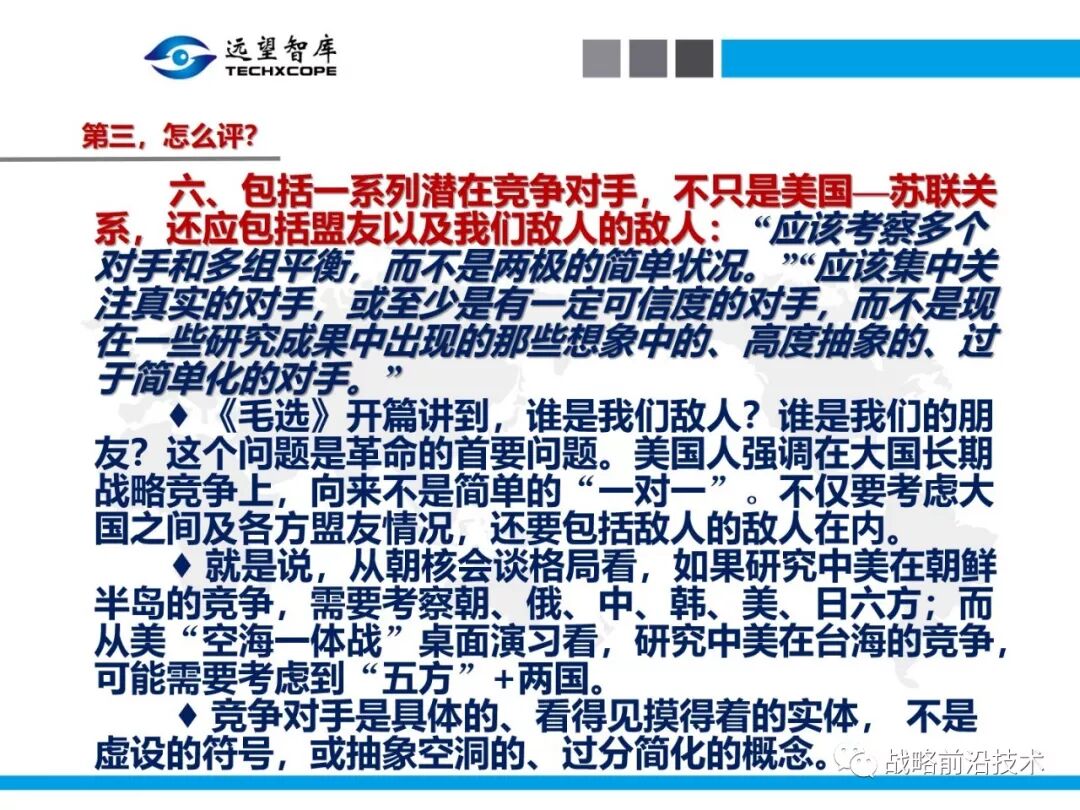 为帮助相关人员了解、熟悉、掌握和借鉴运用净评估思维理念及方法手段,深入研究探讨净评估与大国长期战略竞争的相关问题,远望智库于6月27日下午,以“净评估与大国长期战略竞争问题研讨”为主题,在北京中航广场举办了第七期“净评估十”学术沙龙。来自相关领域的专家围绕以下四个问题进行了研讨:一是为什么大国长期战略竞争要净评估?二是大国长期战略竞争的净评估评什么?三是大国长期战略竞争的净评估怎么评?四是大国长期战略竞争的净评估案例介绍,以及启示与思考问题。应相关人员要求,现将本期学术沙龙开始时的引导发言PPT部分稍加整理、增强可读性,并予以发布,仅供参考。