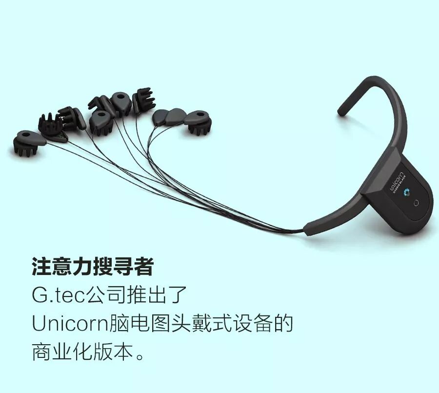至于Agent Unicorn对于注意力缺陷多动障碍患儿究竟价值几何,临床研究正在进行当中,不过G.tec公司最近已经发布了一款面对科学家、制造商和艺术家的Unicorn 脑电图设备,售价为1 100美元。这款设备没有摄像头角,使用柔软的头罩固定头部电极。蓝牙连接可传输数据,可使用不同的编程语言对数据进行实时分析。