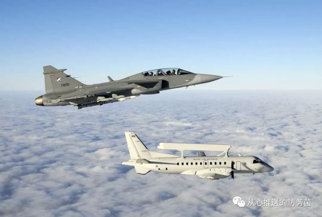 泰国空军萨博340预警机和JAS39“鹰狮”战斗机同框飞行