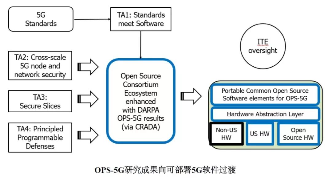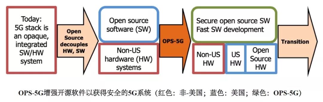 为此,美国国防高级研究计划局(DARPA)创建了“开放、可编程、安全的5G”(Open, Programmable, Secure 5G,OPS-5G)项目,以应对未来无线网络面临的诸多安全挑战。OPS-5G项目将探索为5G移动网络开发一个可移植、符合标准的网络堆栈。该网络堆栈是开源的,并且设计上是安全的。该项目旨在实现对各种网络软硬件组件的“即插即用”方法,从而减少对不可信技术来源的依赖。OPS-5G的目标是开发开源软件和系统,使5G以及5G以外的未来几代网络更加安全。