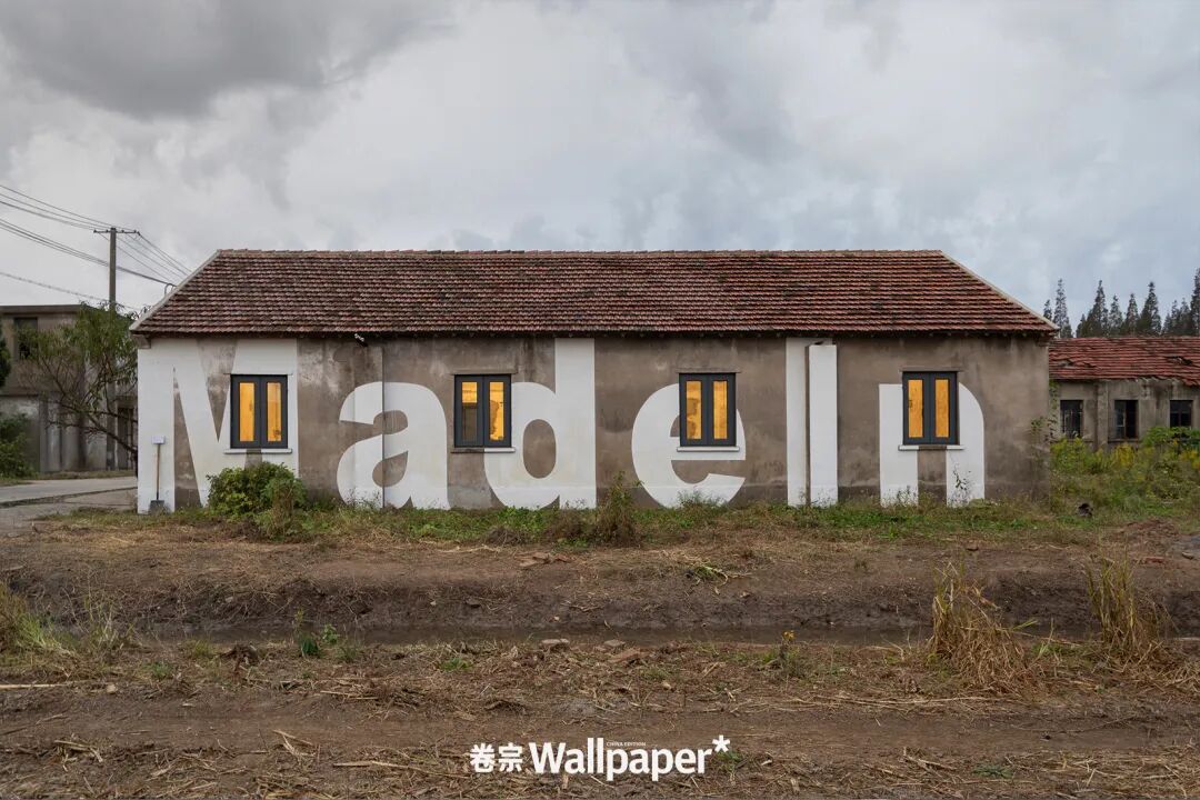 目之所及是些许单调的乡村景观—— 平整的道路、成排的林木向前方绵延;若干座砖瓦剥落、石墙斑驳的农舍整齐地排布在一片荒地间。只有农舍侧面墙壁上粉刷的雪白 “Made In(没顶)”,揭示出它们神圣的新身份。被自然包围的人迹,仿佛在等待着艺术家们去做些什么,以增添一些 “艺术氛围”。