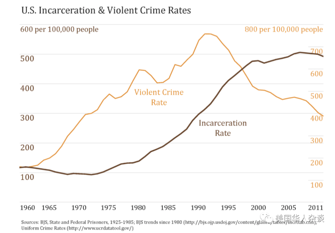 况且,与世界任何一个国家相比,美国监禁概率已经最大了,每100名美国成年人中有1名被监禁,人均比率是西欧国家的五至十倍。尽管近年来趋势有所放缓;就连以惩罚性司法最为严苛的国家也望尘莫及,美国每10万公民有707人被监禁,而中国每10万人有只有124至172人,伊朗每10万只有284人。