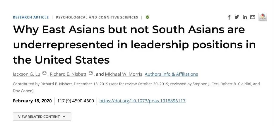 “东亚人获得领导职位可能性确实低于南亚人和白人,而南亚人居然超过了白人。”