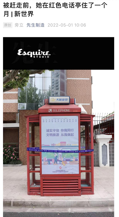 今天下午,刷朋友圈,我看到一条持续霸屏的文章,叫《被赶走前,她在红色电话亭住了一个月》。