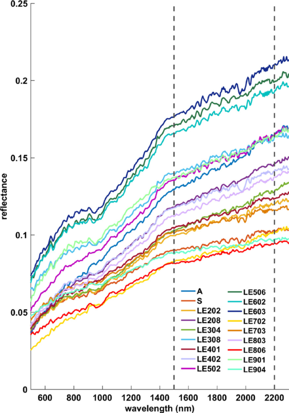 图 2. 红外成像光谱仪前九月昼获取的光谱