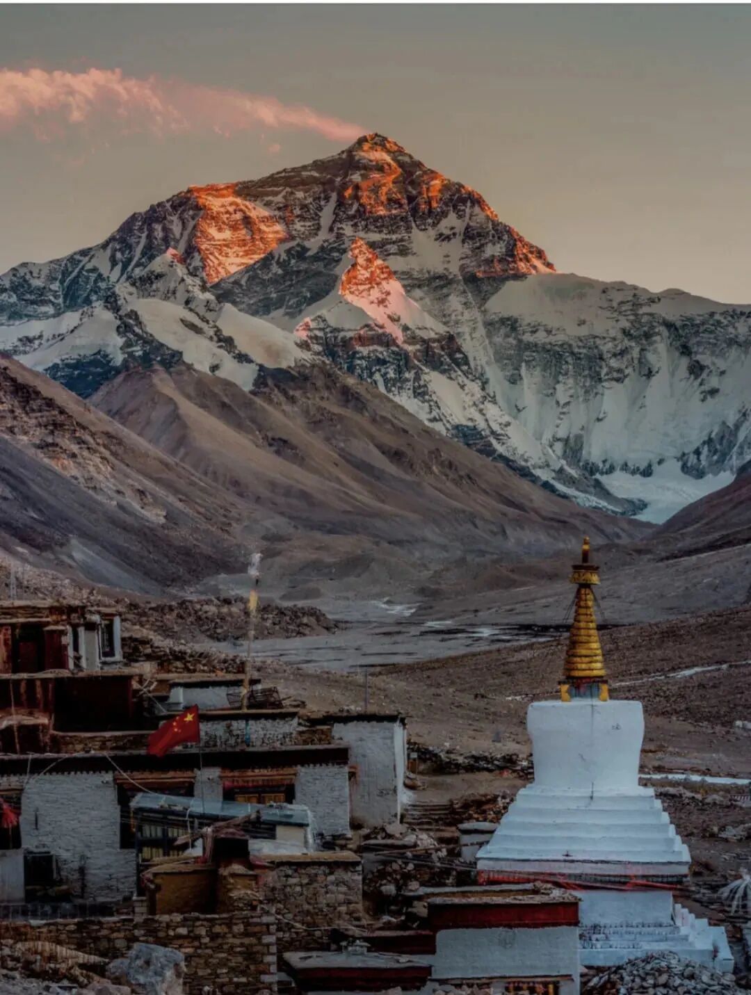 If the weather is good, you can get up early to enjoy the gorgeous sunrise of Everest Peak in the Rongbuk guesthouse.