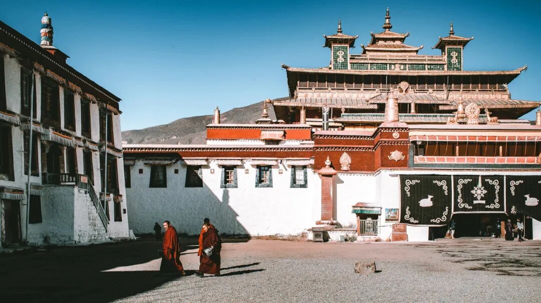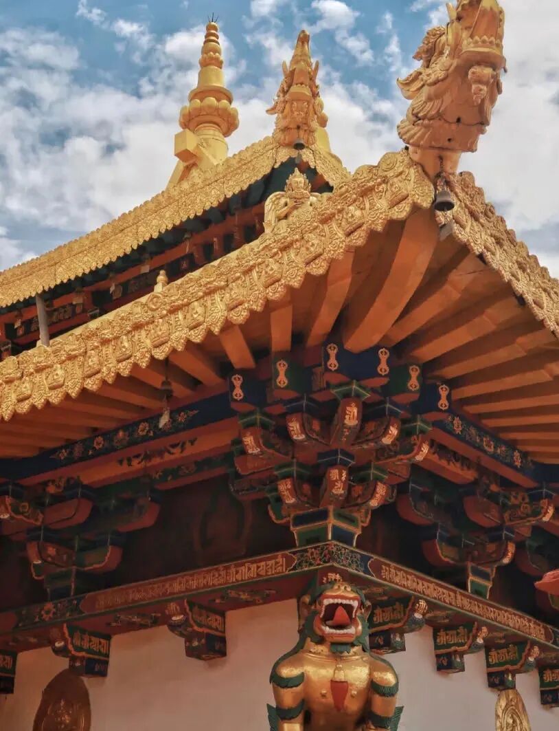 The Monastery with sparkling yellow roofs and red walls houses those devout monks and visitors, describing the beautiful moments about human and their holy religious beliefs.