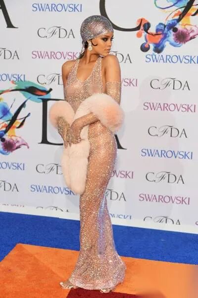 就连如今大胆女明星们的标配,透视装,蕾哈娜早在2014年就穿过了。