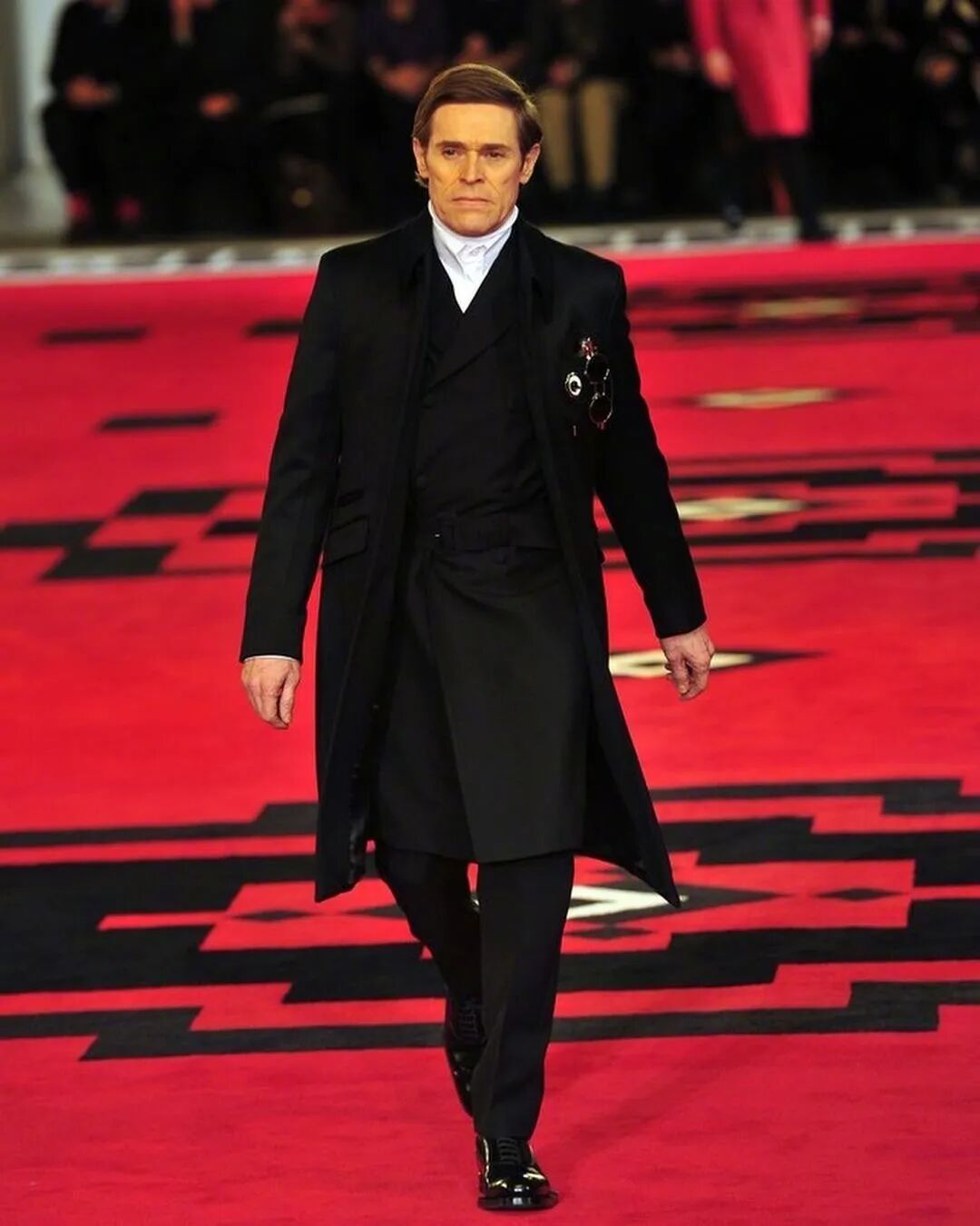 1996年,Prada就找了当时出演了《英国病人》的演员威廉·达福拍摄了当年秋冬男装广告,邪魅一笑太勾魂。
