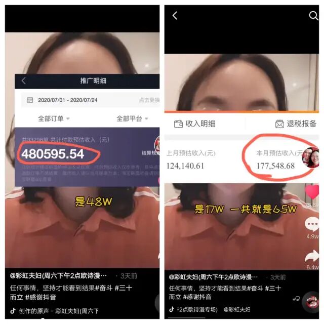 8月3日,抖音网红“彩虹夫妇”发了一则短视频,其中算了这么一笔帐: