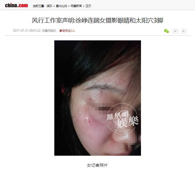 若说丢手机是手抖,那么被袭击的狗仔可谓稳若泰山,当即按下快门,拍出这张著名照片: