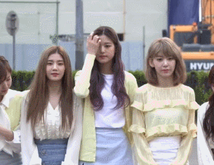 最经典的一幕,是2019年4月21日,她们团录制音乐节目前的大合照。