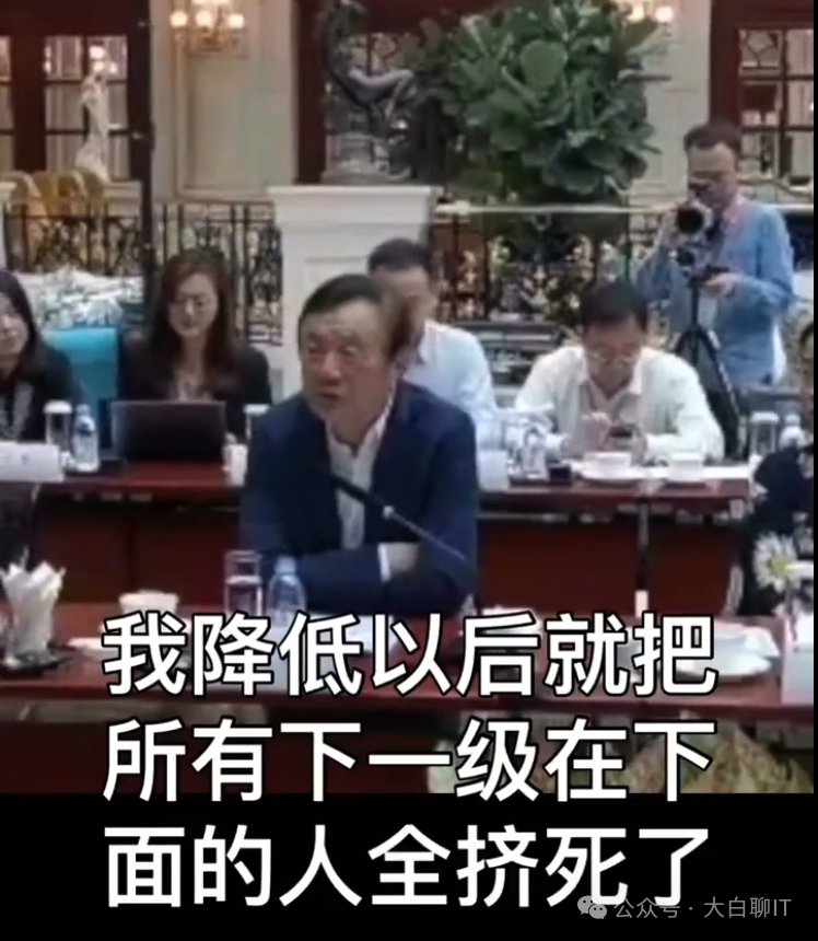 还有一次演讲中,任正非说价格降低后就把所有下一级下面的人全挤死了,我(华为)就成了西楚霸王,那这样最终是要灭亡的。