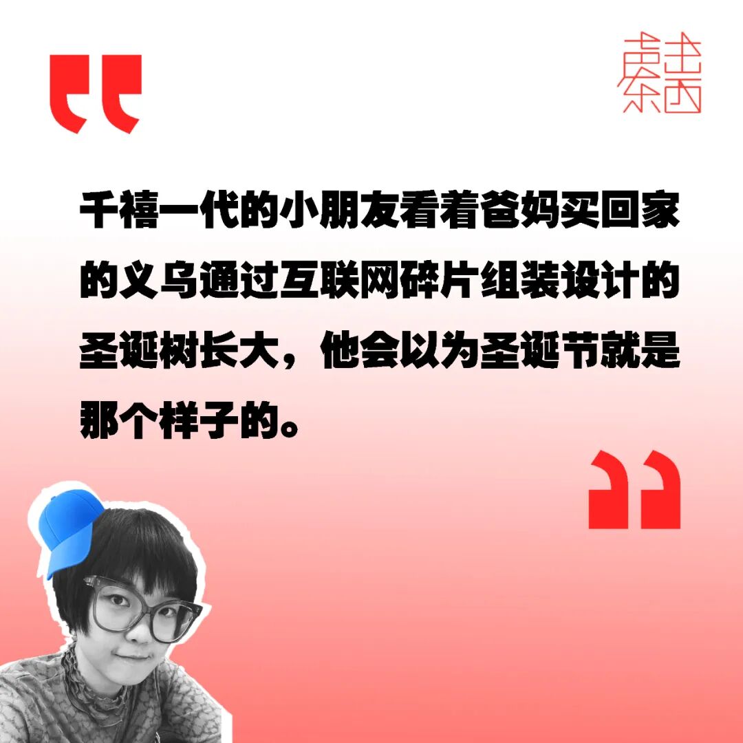 或者,她在义乌意识到,全球化,使得义乌的小商品正在定义西方的圣诞节等具有文化符号的东西。