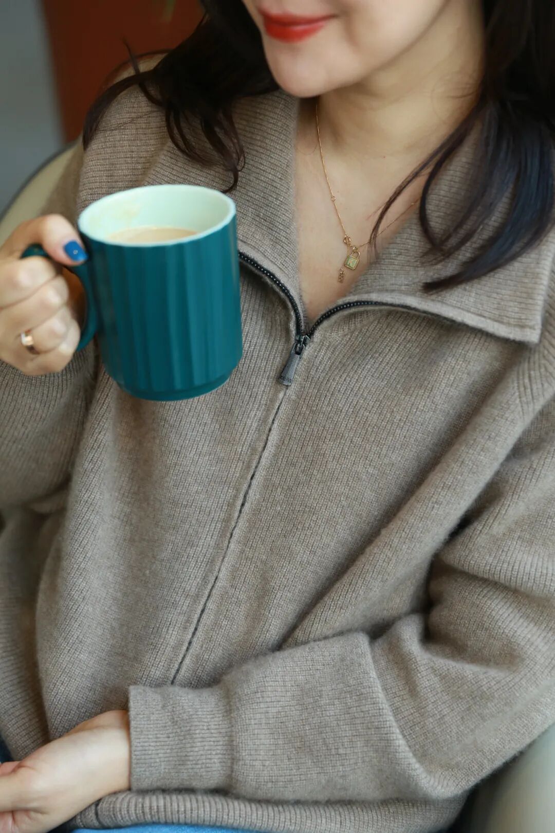 我对衣服的要求有点“吹毛求疵”。不能没设计,但也不能太over,不能太繁琐,必须要百搭,但还得有个性。既要单穿有质感、又要叠穿时尚感、还要怎么穿都没有臃肿感。我的处女座小宇宙在这事儿上被发挥到了极致。这次的羊绒衫,是我从N多款式里选中的拉链款设计。百搭不挑人的大地色系,还同时具备高级感和时尚感。克重在370克左右,价格却非常美丽。之前我在“别叫我吉米妈”给大家推荐过,好多姐妹买过后都要求返团。