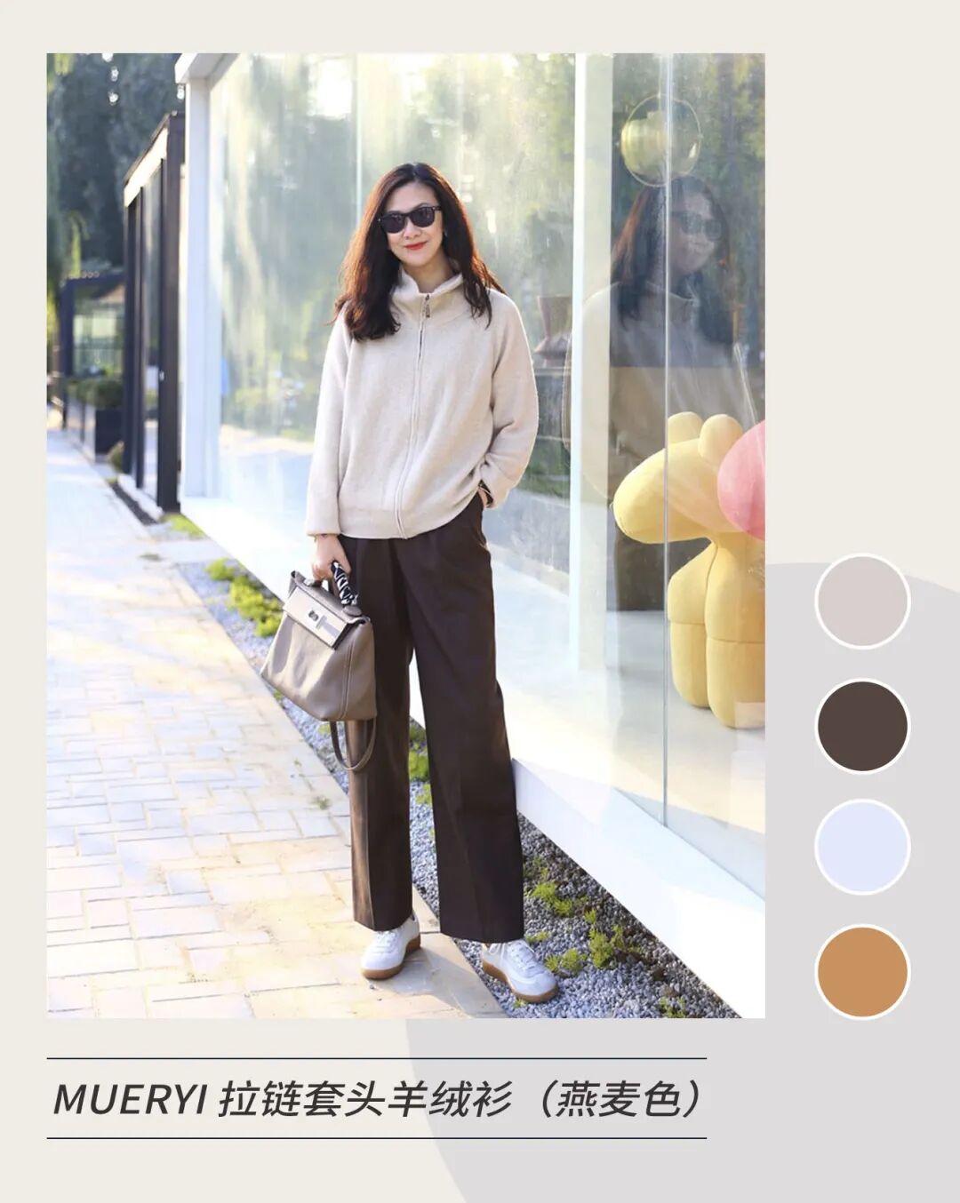 这次选的MUERYI 拉链套头羊绒衫,是我和团队小伙伴们对比、试穿了十几款羊绒衫后选择的,版型好看减龄,是真正的100%羊绒,不管是单穿还是叠穿或者搭配外套都无敌好看,可以营造高级感。之前有姐妹说,这样的衣服你要是告诉我便宜我倒是觉得质量不好了。今年很多大牌都出了这种拉链款式的上衣,宽松OS版型,时髦度没的说。包容性很强,小缺点都会一一藏起来,不挑身材、不挑年龄,任何人都可以轻松驾驭。