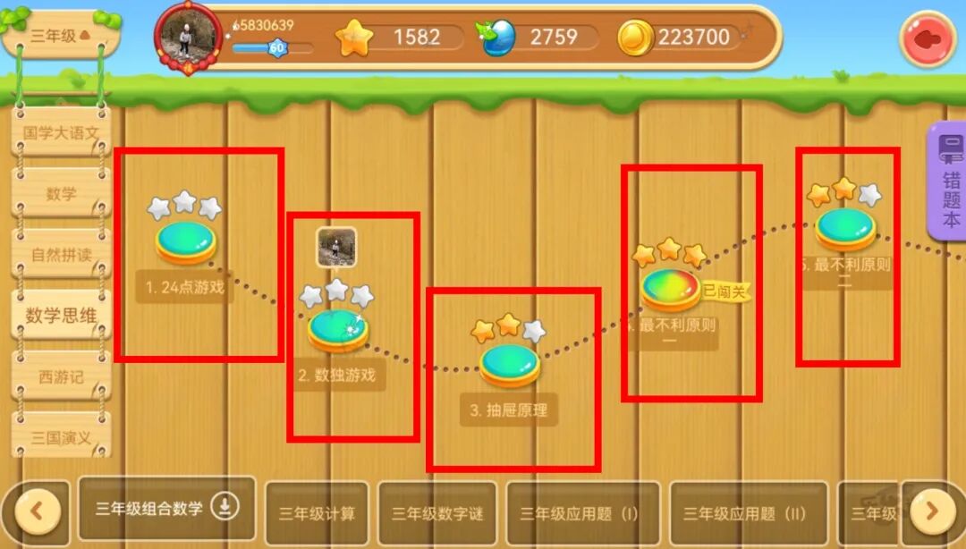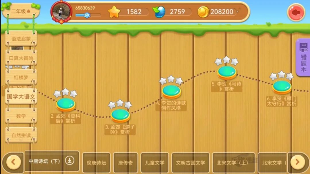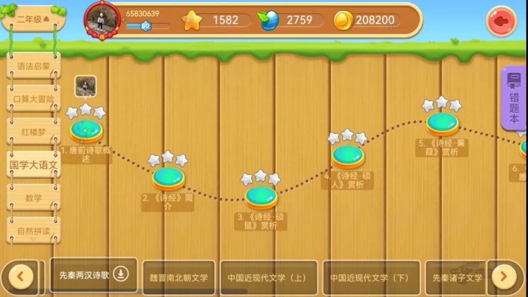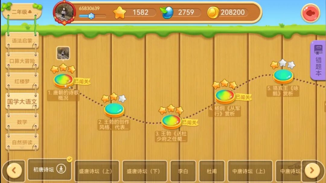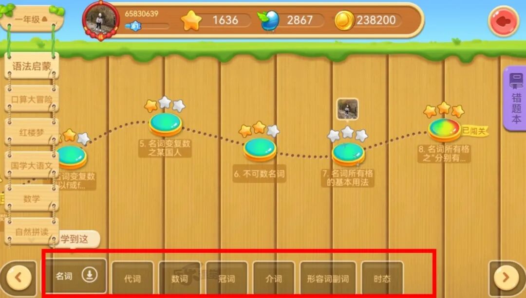 前面说过,小学、初中阶段有2000+个知识点,天天练就把这些知识点设计成游戏的闯关模式,大大提高了孩子的学习兴趣。