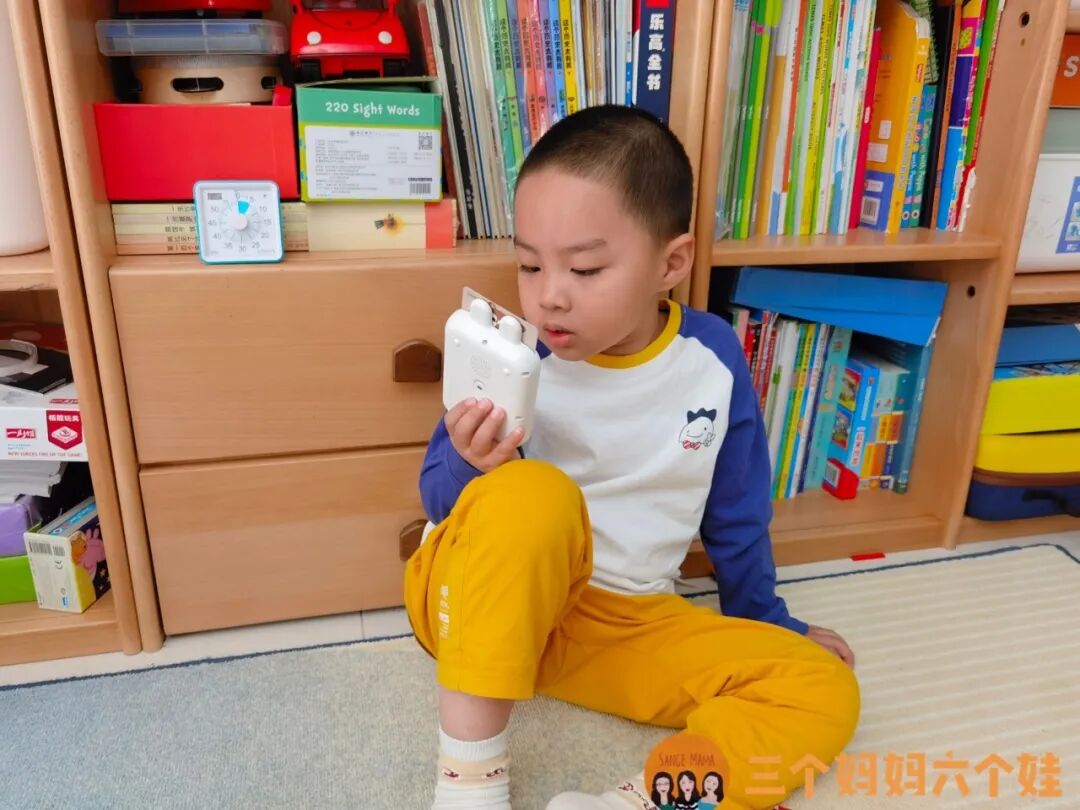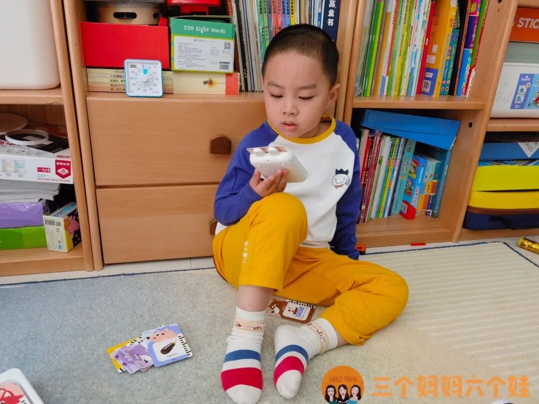 这个学习机不需要联网,也不用下载资料,没有费眼的电子屏,孩子把卡片插进机器里就能学习中英文、做游戏,甚至没有卡片,也能随身拿着磨耳朵。