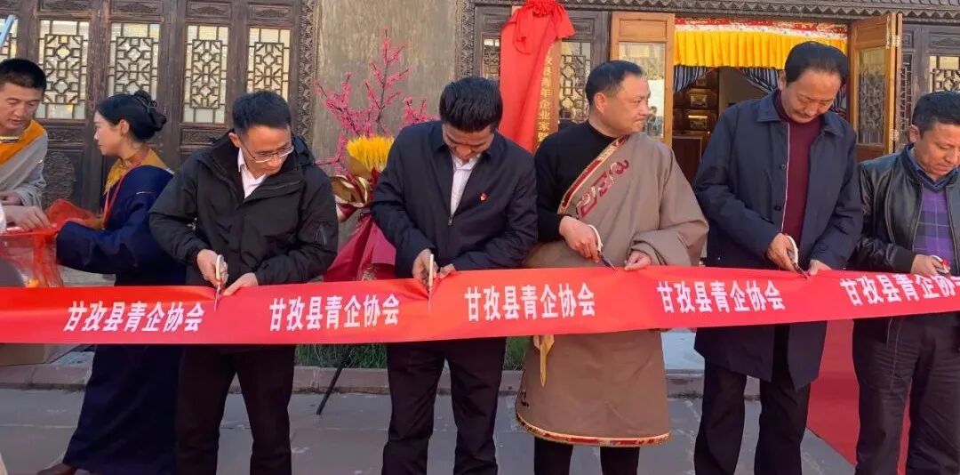 其太、汤红传,组织部、宣传部等相关单位负责人及青年企业家代表共同为青年企业家暨创业就业协会剪彩;其太、汤红传分别为青年企业家暨创业就业协会、甘·路连心青年之家进行揭牌。