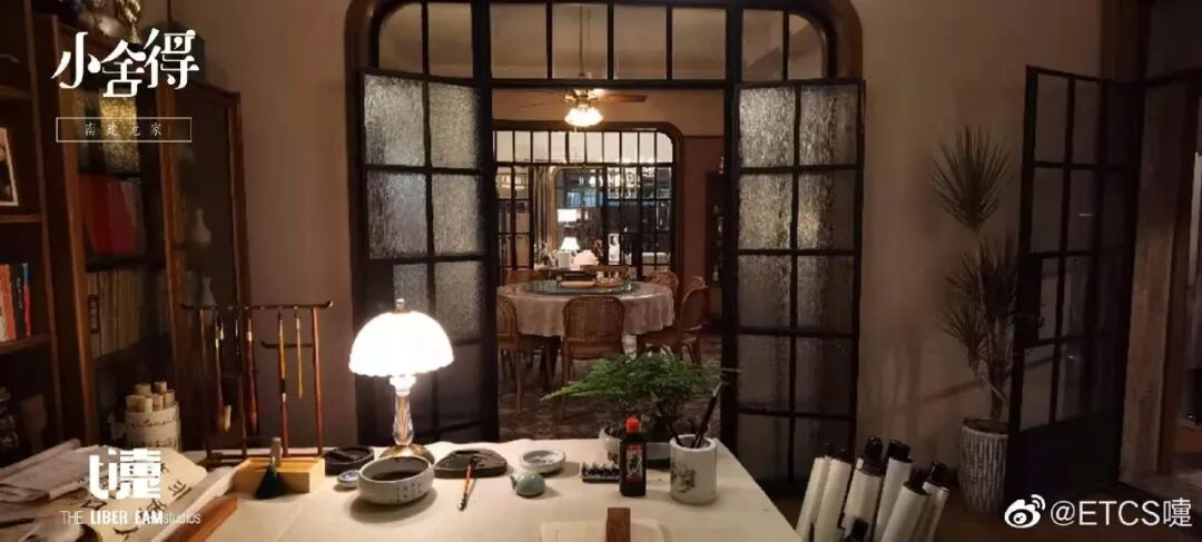 以南建龙家为例,餐桌放在了南家的中心位置,一家人围坐在餐桌前,几乎所有的冲突都在吃饭时爆发,集中了所有矛盾的餐桌就是这个家的戏剧中心。从餐厅向外,家里的各个区域用玻璃门做隔断,视觉上通透但又有阻隔作用,也是南家一家人表面和气实则疏离的家庭氛围呈现。