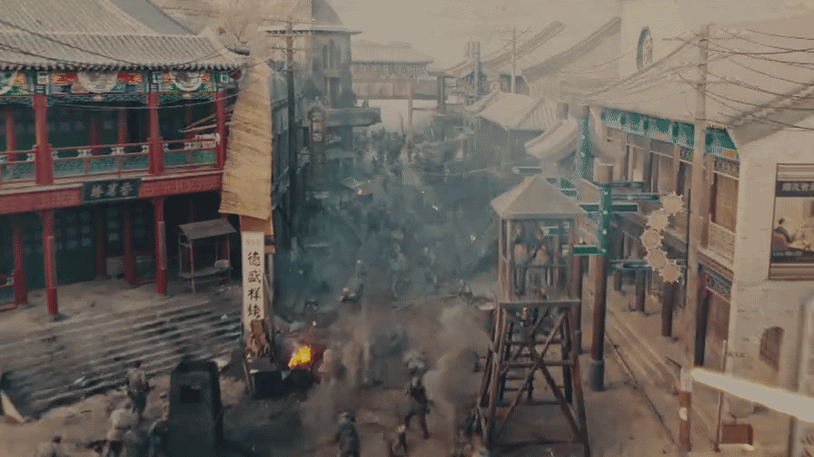 从视效的角度出发,刘冲亚最先想到的是,在分析一场戏之于全片里的意义中,考虑到观众的视觉心理,进而与剧组达成“通过转换视角”来解决观众的历史代入感问题。