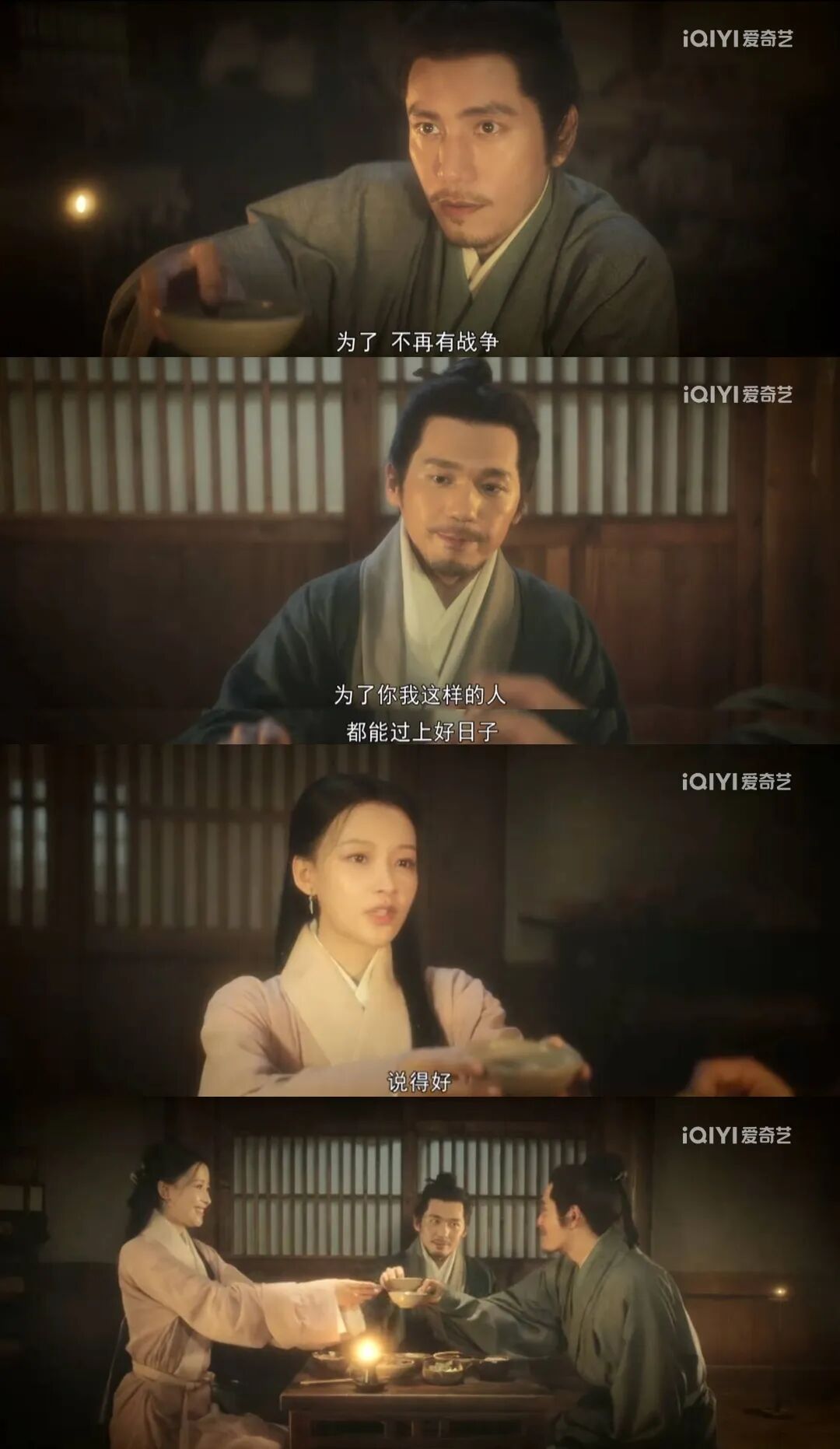 时间倒回到荀诩介入整场谍战之前,幽暗的审讯室里,被倒吊溺水审讯的他想起了与兄弟陈恭、表妹翟悦一起吃的再普通不过的一餐,饭桌上,已开展情报工作的他(她)们举杯约定,“为了不再有战争”“为了你我这样的人都过上好日子”。