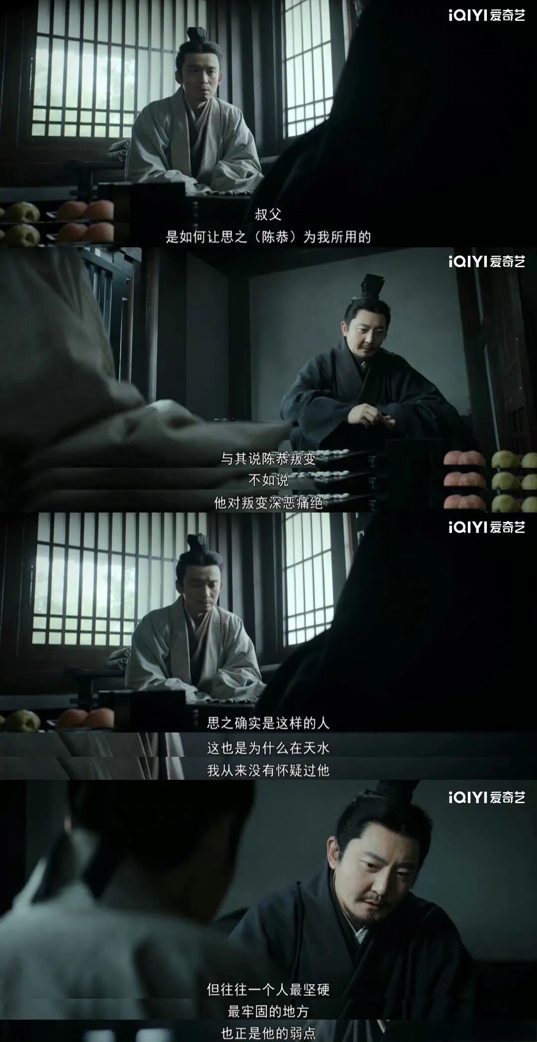 惊心动魄的较量、生死一线的情节中,人物与人物之间的情感关系也在一定程度上调和了紧张感。陈恭与荀诩的兄弟情、冯膺与孙令的姻亲关系、郭淮与郭刚的叔侄关系、陈恭与李严的师生情谊等是衔接长短线故事的情感纽带,也从社会关系角度对谍战与“情报职场”进行另类解码。