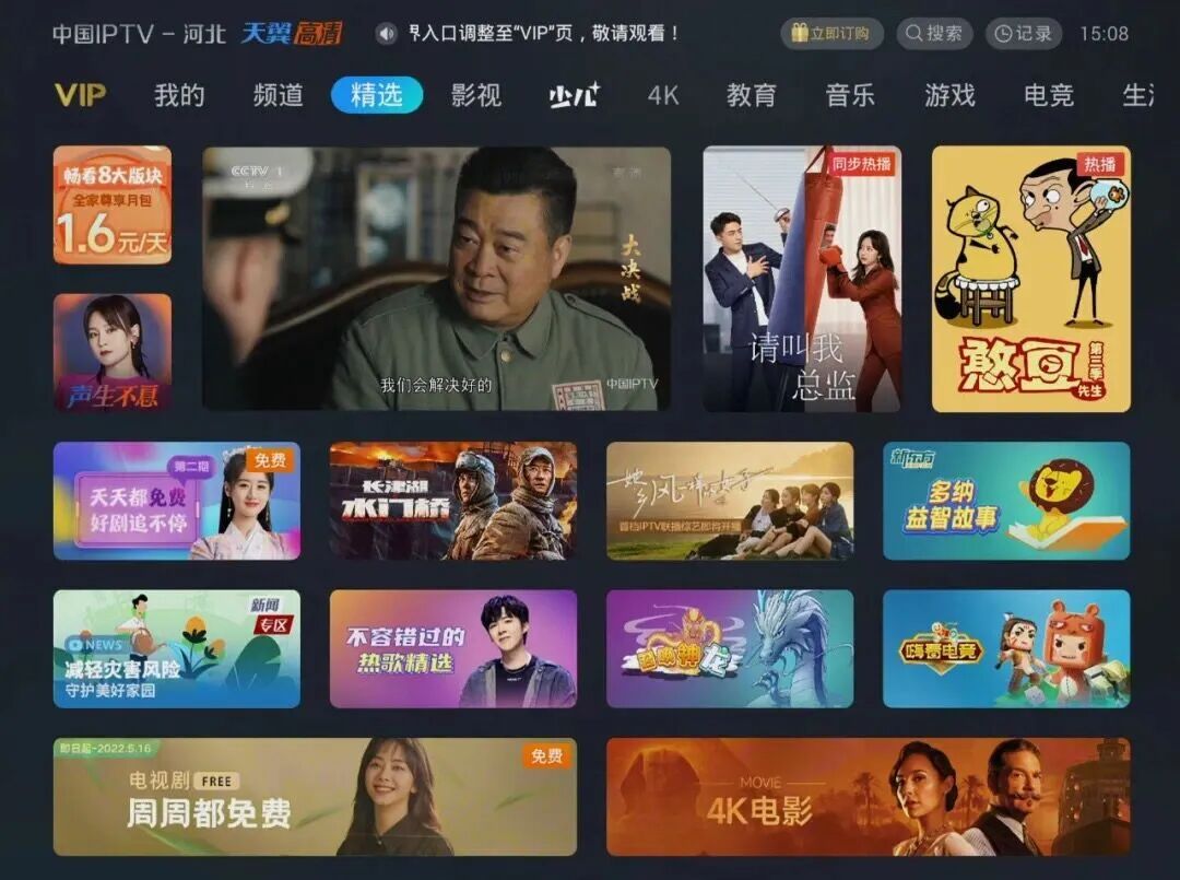 近年来,各IPTV平台以丰富的节目内容、多元的互动体验和便捷的智慧场景等获得用户的喜爱。作为广播电视在新媒体领域的重要延伸,IPTV还在不断拓宽大屏内容和服务的边界。