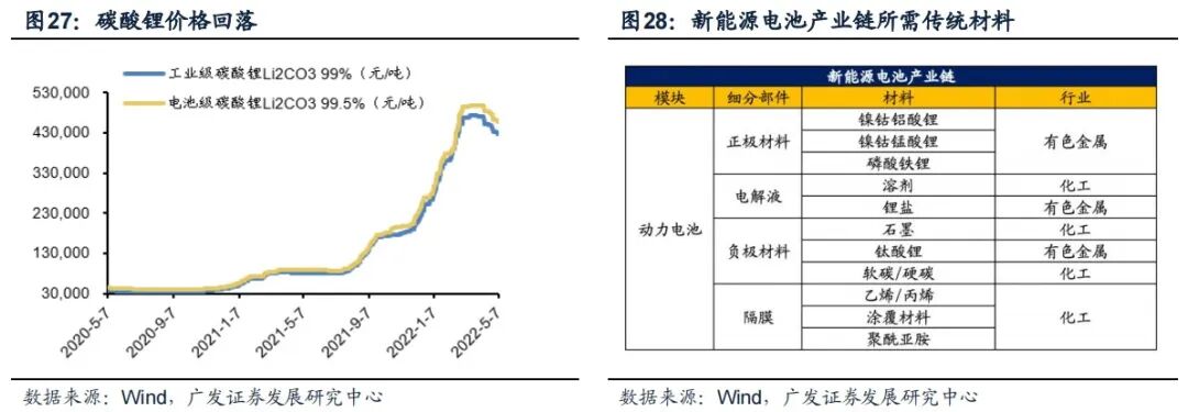 上游钢铁、有色金属等价格边际回落,产业链利润分配或有改善。美元指数走高及海外加息预期压制金属价格及风险偏好,致使国内部分上游资源品与金属价格缺乏支撑。叠加部分资源品如镍、锡等供给改善,且疫情扰动下需求受损及物流受阻,去库压力增大,镍/锡/钴/锌等有色金属价格近期亦有明显回落,或在一定程度上缓和下游环节的成本压力,如新能源汽车、风电等。