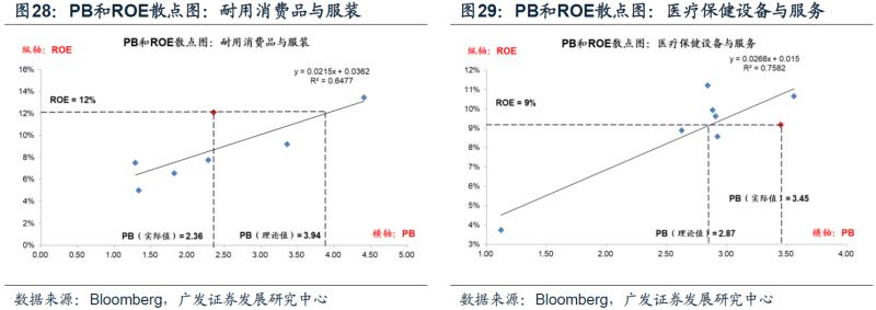 (1)构建行业层面的PB-ROE动态均衡模型:在行业层面,构建PB和ROE的散点图(即对于某一行业,将各经济体的PB和ROE作为散点,标记到坐标轴上),并基于散点图拟合出PB和ROE的回归模型;