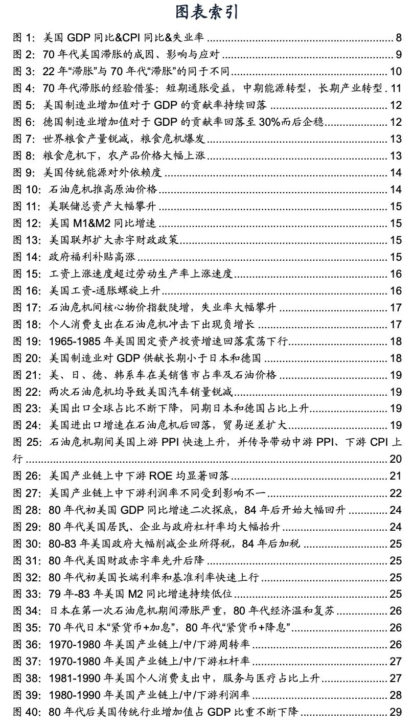 “逆全球化”大趋势下,我们该如何应对滞胀压力?我们在21.12.5发布的年度策略展望《慎思笃行》中,提出22年的两个“预期差”之一是海外的“滞胀魅影”,在22Q1得到验证。同时,我们在22.3.20发布的春季策略展望《“逆全球化”下的慎思笃行》中判断:22年俄乌冲突加速“逆全球化”,将进一步加剧全球滞胀压力。今年3月美国CPI达到8.5%,创下1980年代以来的新高。我们复盘了上世纪70年代美国滞胀以及80年代美国复苏(走出滞胀)的经验,并据此尝试探讨:22年应该如何应对“逆全球化”下的滞胀压力?——