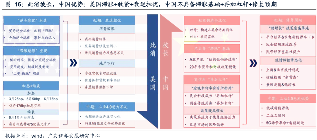 展望下半年,我们认为中国监管层致力于恢复经济活力的态度明确,而海外依然是“衰退预期+货币紧缩”,“此消彼长”仍将延续。