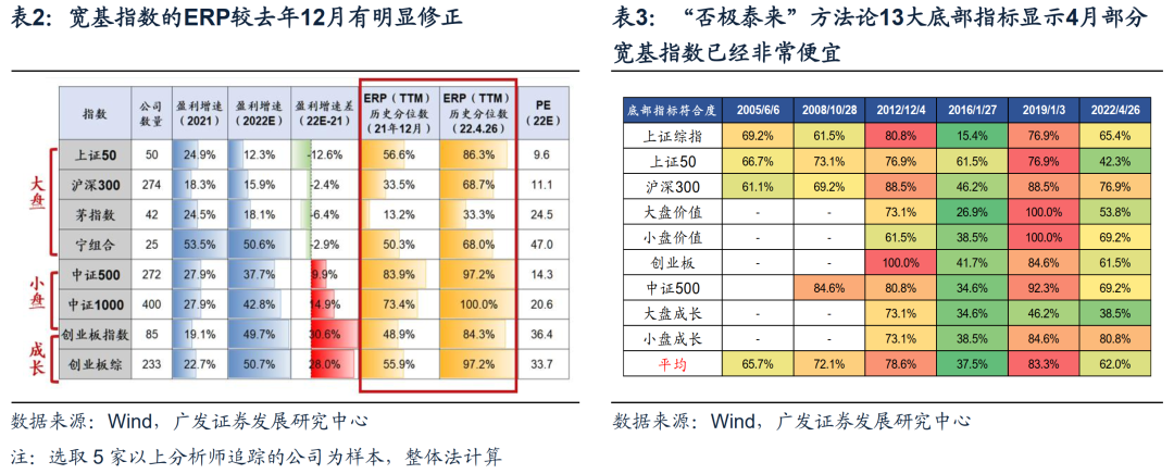 1. 估值底:4月末宽基指数估值较去年底显著修正,ERP达历史顶部区域