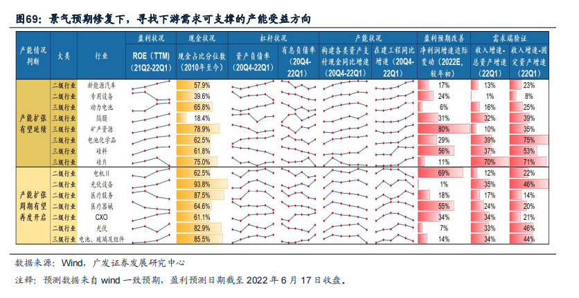 (2)产能扩张尚未开始,但满足需求端旺盛、盈利预期改善、杆杆较低、现金充沛等条件的,有望开启新一轮产能扩张:光伏产业链(光伏设备、电池组件等)、医疗器械等。
