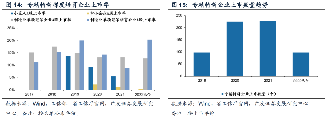 22年6月工信部印发《优质中小企业梯度培育管理暂行办法》,明确了创新型中小企业、专精特新“小巨人”和“专精特新”中小企业的认定标准。16年工信部印发《制造业单项冠军企业培育提升专项行动实施方案》,规定了单项冠军认定标准。