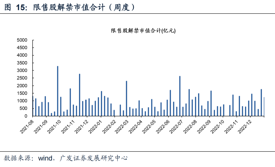 (1)限售股解禁:上周限售股解禁1447亿元,前一周限售股解禁998亿元,预计本周限售股解禁982亿元(以2022年12月30日收盘价计算)。